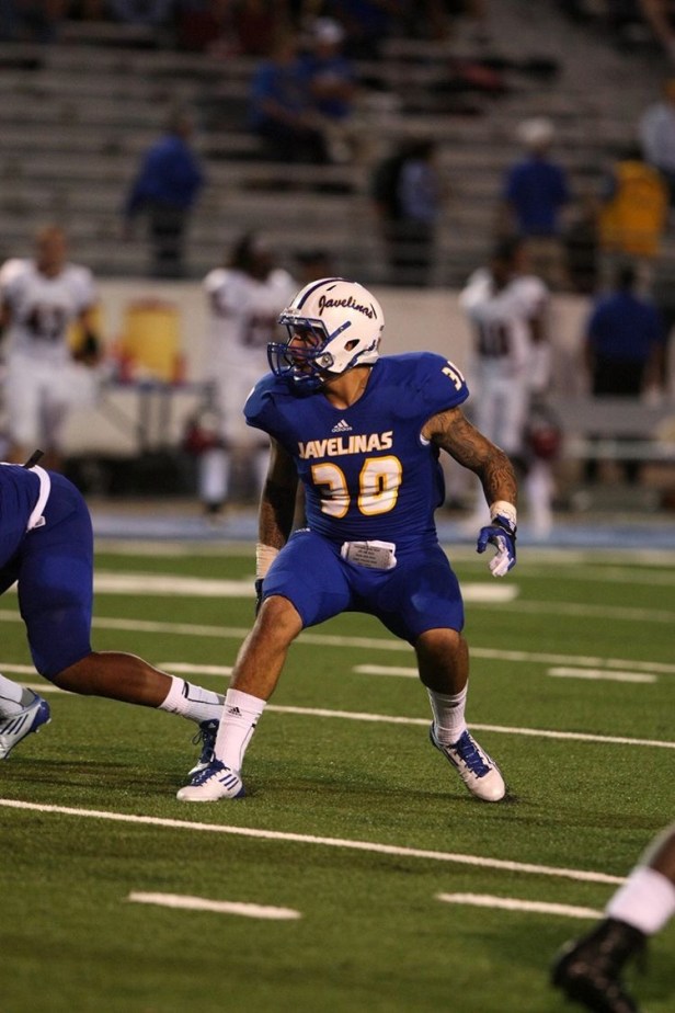 A two-year letter winner from Los Angeles, Aguilar transferred to Kingsville for the start of the 2011 season after two years at Pasadena City College. His first season included 91 tackles, 14 for loss, and 3.5 sacks while he was named the LSC Linebacker of the Year and First Team All-LSC.